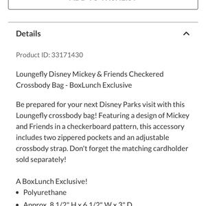 Stylish Loungefly crossbody bag with Disney character design. Features a checkered pattern with black and white squares. Perfect for Disney fans.