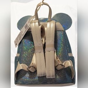NWT, Silver Anniversary at Sea Disney Cruise Line Loungefly mini backpack. Lt. blue, silver, and sparkly. Beautiful bag.
