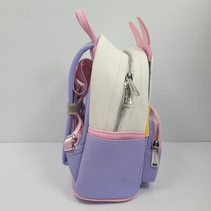 This delightful Disney Loungefly set features a mini backpack and matching wallet, both adorned with a whimsical Daisy Duck design. Crafted with playful pastel colors and charming details, this set is great for Disney enthusiasts. With ample storage and secure zippers, it's a functional and fun accessory for daily use.