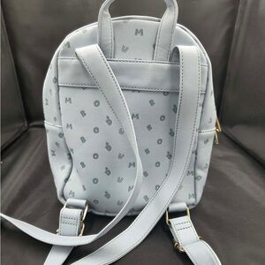 Charming Disney Dumbo backpack with playful design. Features light blue background and gold accents. Ideal for kids' daily adventures.