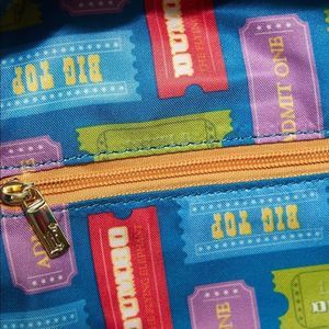 Dumbo and Timothy Q. Mouse soar into your wardrobe as this colorful mini backpack from Loungefly! Inspired by the animated classic, Dumbo, the Disney pair appear as a die-cut appliqué, flying over a circus tent with die-cut balloon details decorating the scene. With gold-toned hardware, an enamel brand badge, adjustable shoulder straps, and an interior circus ticket-patterned lining, you can fly off to your next adventure in style whenever you don this bag!