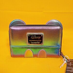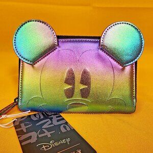 Loungefly Disney Mickey Mouse Oil Slick Iridescent Cosplay Zip Around Wallet NEW