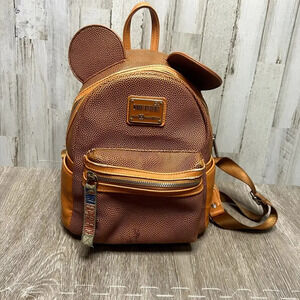 Keywords: Loungefly, faux leather, Disney Parks, NBA Experience, brown bag, unisex, everyday use, all seasons, casual, theme park, pre-owned, solid pattern, accessory, fashion, bag.
