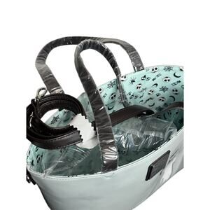 You and this tote are simply meant to be! Inspired by Nightmare Before Christmas, this bag stars Jack, Zero, and Sally within a heart amid spooky icons, accented with sequins and embroidered details.