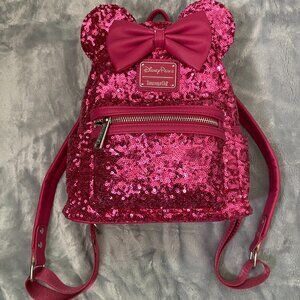 Loungefly Disney Parks Hot Pink Sequin Mini Backpack - Discontinued, Pre-Loved