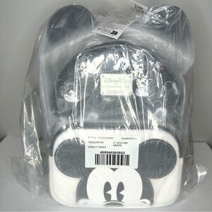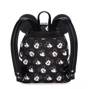 NWT Loungefly Disney Parks mini backpack featuring a playful Mickey Mouse design in classic black and white.