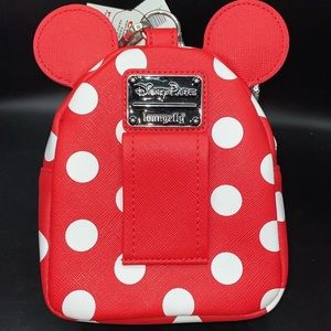 Gorgeous polka dot Minnie Mouse loungefly accessory with a silver sequin sideways bow