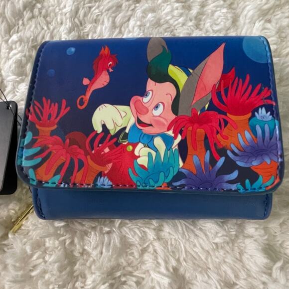 Loungefly Disney Pinocchio Underwater Small Zip Blue Wallet NEW