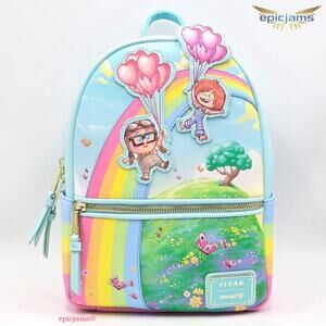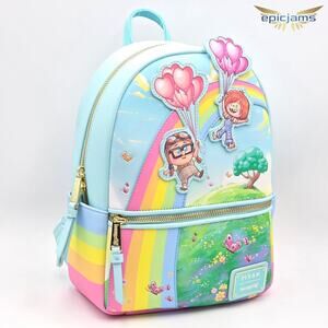 Loungefly Disney Pixar Up Carl & Ellie Rainbow Mini Backpack Bag & Wallet Set