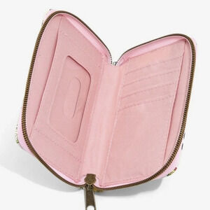 Rep your favorite classic Disney princesses with this mini wallet, featuring an allover print of three-tiered cakes inspired by your faves like Belle, Rapunzel, Cinderella and more. Comes with a half billfold, 4 card slots and a clear ID slot, with zip-around closure.
