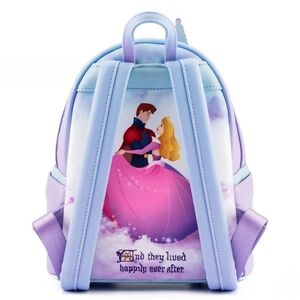Live happily ever after with this Loungefly Sleeping Beauty Castle Mini Backpack.