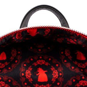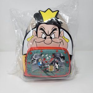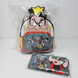 Loungefly Disney Alice in Wonderland Queen of Hearts Villains Scene Mini Backpack and Zip Around Wallet Set (includes the mini backpack and the wallet).
