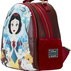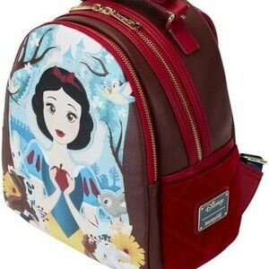 REGAL MATERIALS: This Loungefly Disney Snow White Mini Backpack features vegan leather with quilted velvet, tufted, iridescent, and appliqued details for a magical finish. Measures approximately 9"W x 10.5"H x 4.5"D (23 cm W x 27 cm H x 11 cm D), making it perfect for fans of all ages.