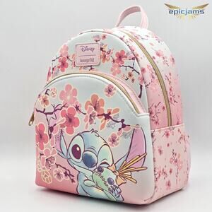 Loungefly Disney Stitch & Scrump Cherry Blossoms Pink Mini Backpack Bag New