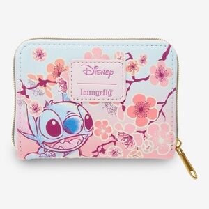 NWT mini zipper wallet features an adorable print of Stitch and Scrump enjoying the cherry blossoms. Comes with 4 card slots, a clear ID slot and a zipper closure.
