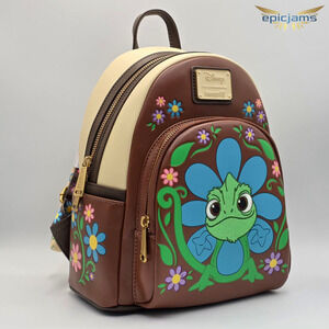 Loungefly Disney Tangled Pascal Flower Floral Brown Mini Backpack Bag New