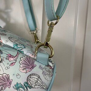 These fish are devotin' full time to floatin' on this Loungefly micro mini backpack! Inspired by Disney's The Little Mermaid, the exterior features a watercolor style print, gold tone hardware, two side pockets, and a brand plaque. Zip it open to reveal a blue interior seashell print. Adjustable straps can be removed and used to convert into a crossbody! Ariel
