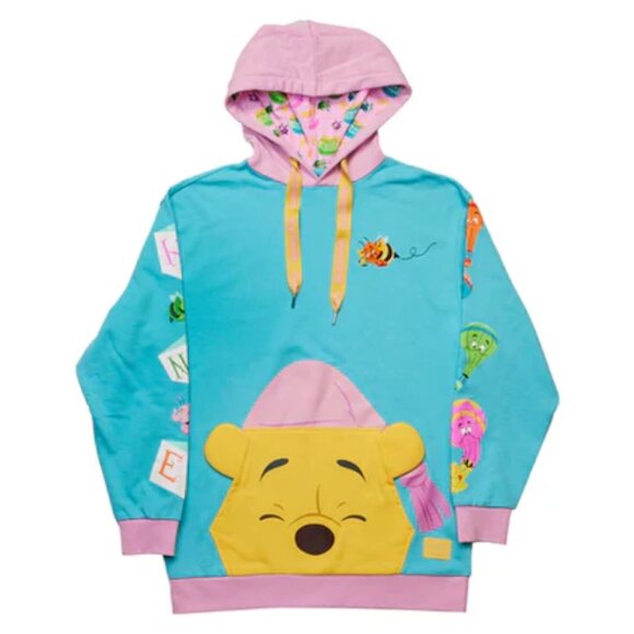 Loungefly Disney Winnie The Pooh Heffalump Dream Hoodie. Front pocket has padded applique ears that stick up at the top. Colorblock playful design. Size Large.