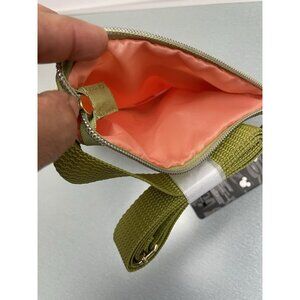 Winnie the Pooh, this fabric bag has an allover print of Pooh, Tigger, Eeyore and Piglet with flower doodles. Comes with a front zipper pocket, top zipper compartment and an adjustable crossbody strap.
