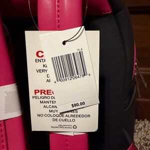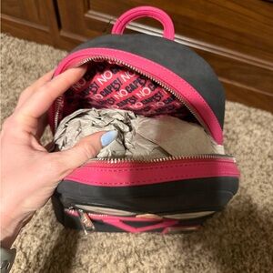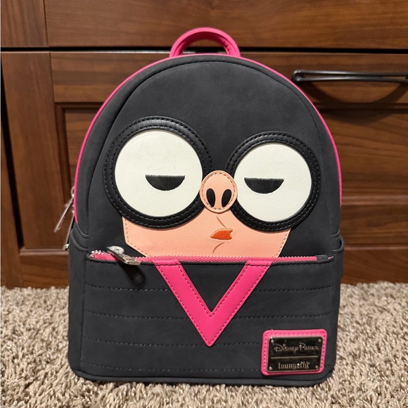 Stylish Loungefly backpack with a unique character design. Features black and pink colors. Perfect for fans and collectors.