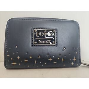 The Loungefly Harry Potter Wallet is a stylish zip-around wallet featuring a geometric blue design with Harry Potter character details from Diagon Alley, including Gringotts Dragon. Made of faux leather and polyester with a microfiber fabric type, this wallet is perfect for any Harry Potter fan looking to add a touch of magic to their accessories. The wallet includes credit card slots and a folding design, making it both practical and fashionable for everyday use.