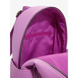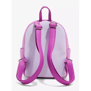 The Loungefly Hello Kitty My Melody & Kuromi Slumber Party Mini Backpack is a stylish and fun accessory perfect for Hello Kitty fans. Featuring the iconic characters Hello Kitty, My Melody, and Kuromi, this mini backpack is made of faux leather with a fabric lining in a vibrant multicolor design. The adjustable purple faux leather strap adds a touch of comfort and convenience, making it ideal for a night out or a slumber party. With a zip closure and heart-themed accents, this backpack is both functional and fashionable for any occasion.