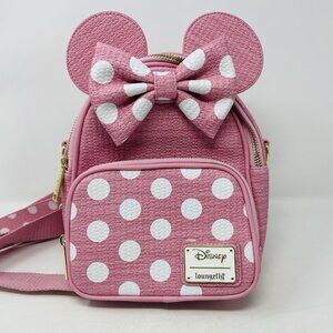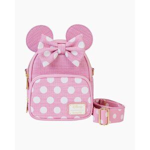 Loungefly Disney Minnie Mouse Woven Texture Convertible Mini Backpack and Crossbody in Pink/White