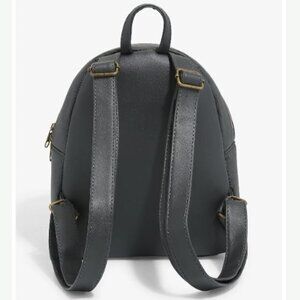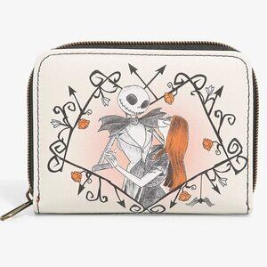 Just like Jack and Sally are simply meant to be, so are you and this mini backpack! From The Nightmare Before Christmas, this backpack features a large watercolor-style print of your favorite Halloween Town couple on a date just outside the graveyard gates, with an allover print of thorny rose vines on the top and sides. Adjustable straps, an interior drop pocket, and antique brass-tone hardware. The wallet features a watercolor-style sketch print of Jack and Sally on the front. Clear ID display, 4 card slots, half billfold, and a zip-around closure.
