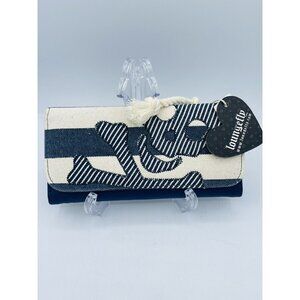 Loungefly Pirate Skull Blue Stripe Wallet Zippered Compartments Rivet Closure