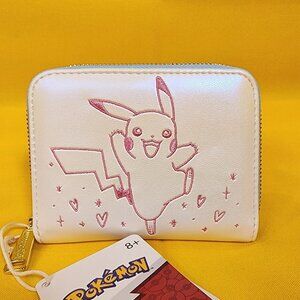 Made with iridescent faux leather, this wallet features Pikachu embroidered front and center. All around are debossed symbols of hearts, Poké Balls, and sweet treats! Inside, you'll find four card slots and a clear slot for an ID.