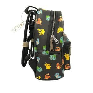 Fall in love with Pokemon all-over again with this Pokemon Starters Mini-Backpack. Featuring iconic starter Pokemon like Bulbasaur, Squirtle, Charmander, and Pikachu, this stylish backpack will be the envy of fellow Pokemon fans. Made of faux leather, features a zippered main compartment, a smaller zippered pocket on the front, and open pockets on each side.