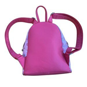 Adorable faux leather backpack features a zippered compartment on the front, adjustable shoulder straps on the back and a carrying handle on the top.