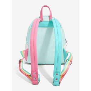Kiki and Lala always have each other's backs, and now they have yours too! The Little Twin Stars peek out from behind a cloud-shaped appliqué zip pocket on this faux leather Loungefly mini backpack, surrounded by whimsical graphic and embroidered details. You'll shine like the Omoiyari Star when you rock this super cute Sanrio accessory, which also features dreamy patterned interior lining with a zip pocket, as well as adjustable straps with a rainbow pastel colorway.