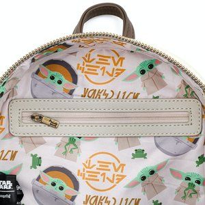 Loungefly Grogu The Child Mini Backpack. The Force is strong with this little one. Let him help you stay organized on the go with this stylish mini backpack. A charming likeness of Mando's Grogu The Child"from Disney Star Wars: The Mandalorian in his hovering pram transport decorates the faux leather bag accented with printed and applique details. Faux leather. Interior features patterned lining and phone pocket. Adjustable straps. Size 9" x 10" x 4". Genuine first quality to us from Loungefly.