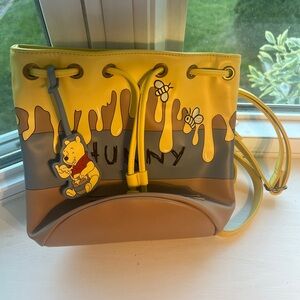 Charming Loungefly bag featuring Winnie the Pooh with honey drip design. Includes playful bee accents.