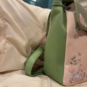 Such a beautiful Winnie the Pooh and Pals floral mini backpack, perfect for spring or anytime! Inspired by wildflowers in the Hundred Acre Wood, the backpack shows Eeyore, Tigger, and Pooh Bear reveling in the beauty of flowers.. The backpack has a magnetized top flap, light green panels, a drawstring closure and interior pocket, and silver-tone hardware. Made of vegan leather.