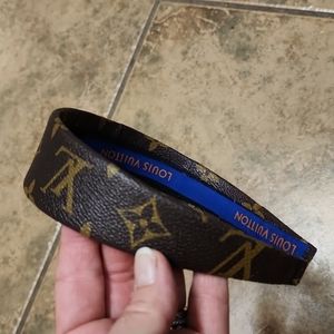 please see pics. HANDMADE by ME using all upcycled authentic materials, including the embossed ribbon liner. 1.6" band. super unique and eye-catching !