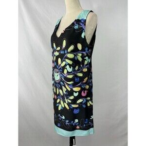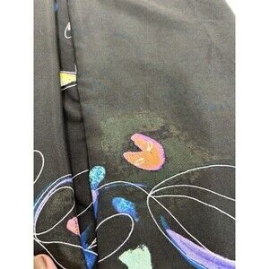 Loup Silk Dress 42 Black Bright Print V-neck Midi Side Zip Sleeveless French