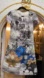 This stunning Lourdes Chavez designer dress is crafted from pure silk and made in the USA. Featuring a structured silhouette, bold abstract floral design in blue, bronze, and gray tones, and delicate horizontal pleating for texture and shape. A timeless couture piece perfect for weddings, upscale luncheons, or elegant events.