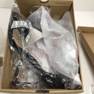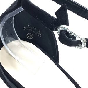 Lov Mark Flora Black Suede Heeled Open Toe Sandals Size 10. New in box. From smoke free home.