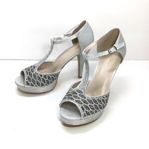 Lov Mark Silver Mesh Heeled Peep Toe Sandals Size 8.5. New in box. From smoke free home. There may be a little dust on bottoms from try-ons.