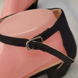 Lov Mark sz 8 Jean-60 Black Suede Shoes Ankle Straps Open Toe Sandal 2 1/4" heel