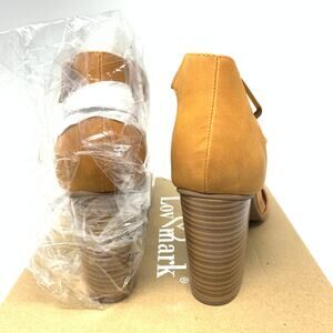 LovMark Sandal Women's Sz 8.5 Stellar Open Toe Heeled Faux Suede Ankle Strap Tan