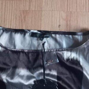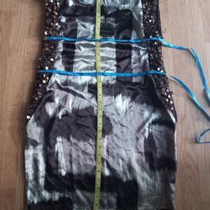 LovPosh satin like fabric, grey and brown abstract dress, with sequin detail. Please see measurements in the pictures.