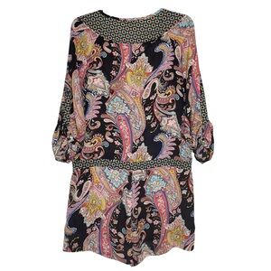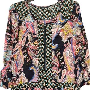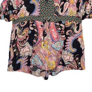 LovPosh Black and Pink Paisley Romper Button up 3/4 Sleeves size S