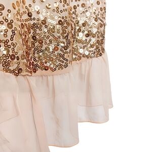 Love 2 Be Loved Peach Sequin Tunic Tank Top Small Sheer Layered Hem