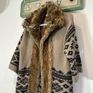 Love 21 Aztec faux fur cardigan sweater wool tan small women’s boho chic