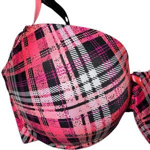 Lightly padded and has underwire cutie! Pretty pink white and black plaid design! Adjustable straps!