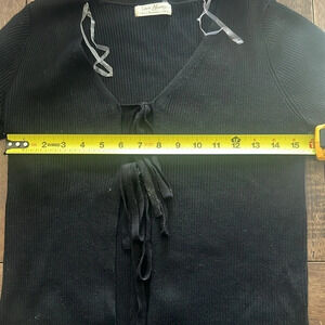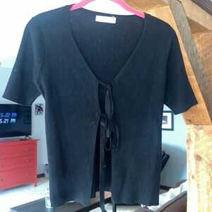 Love Always Sz Large Juniors Ribbed Short Sleeve Two Tie Front Cardigan