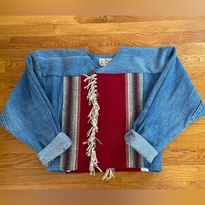 Love Apples by Stephanie Womens Denim Jacket with Ortega's Weaving Shop Wool Woven Blanket Detail